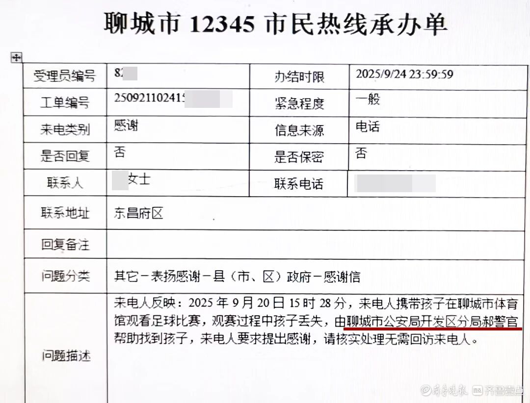事后,张女士特意致电12345市民热线,表扬郝美岳警官高效负责的工作态度:“他们工作效率太高了,五分钟不到就找到了我的孩子,真的非常感谢!”她希望通过热线为民警的暖心帮助点赞。