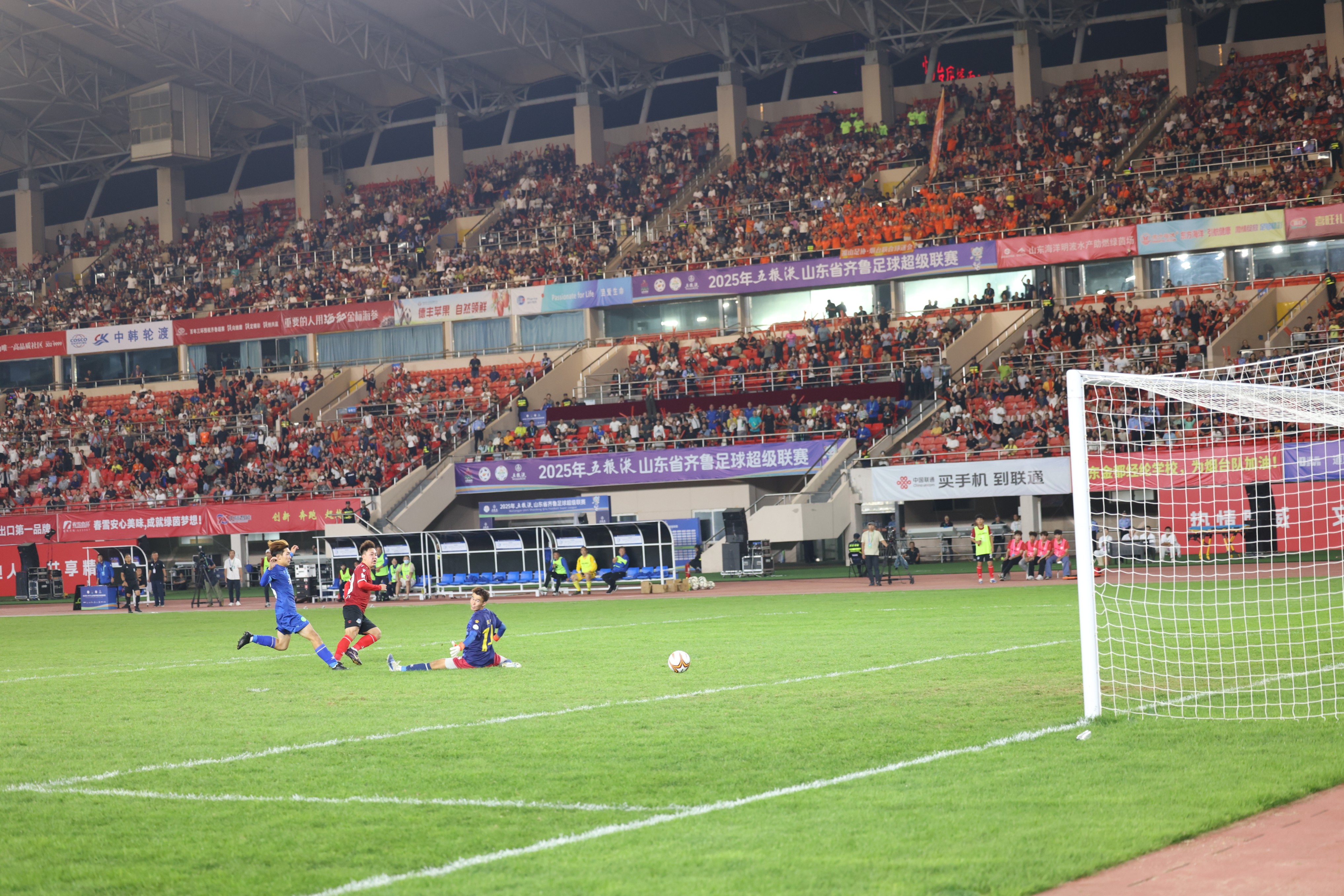 9月27日晚,2025年山东省齐鲁足球超级联赛烟台赛区第二场比赛在烟台体育公园体育场举行,烟台队主场迎战潍坊队。