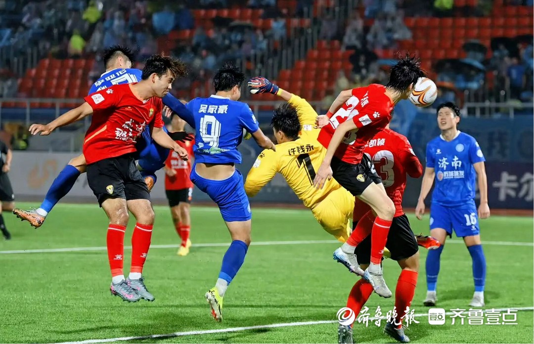 在上半场伤停补时阶段,主队抓住对方一次失误的机会,9号吴家豪打破僵局,上半场1比0领先。下半场开始,虽然威海队大面积调整,但依然阻挡不住主队的猛烈进攻。在68分钟,主队的9号吴家豪梅开二度。在73分钟,主队13号球员李亚伦扩大比分锁定胜局。比赛过程中,两队球员在中场的激烈绞杀、每球必争的态度,充分展现了山东足球特有的硬朗与直接。