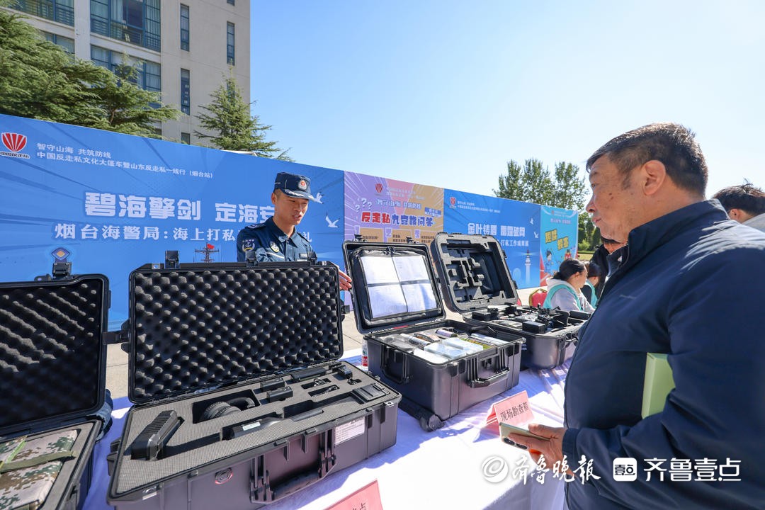 此外,现场还设有普法展示区与联合普法宣传摊位,通过展板、海报、宣传册等多种形式,集中呈现烟台近年来在反走私综合治理方面取得的成效与典型警示案例。公安、海警、烟草、海关等部门人员为高校师生们答疑解惑,引导大家树立反走私意识,增强他们积极参与反走私工作的社会责任感。
