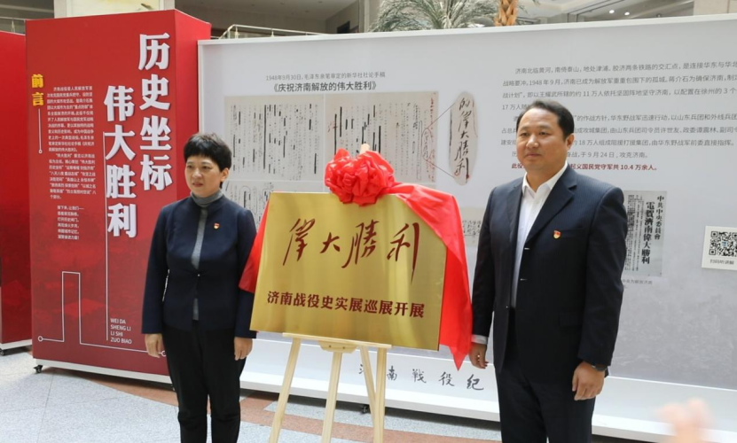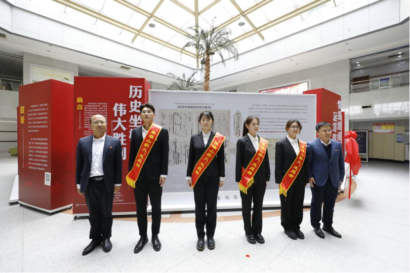 在全体师生的热切期盼中,商华、陈利伟共同为“伟大胜利”济南战役史实展揭幕,济南大学校团委书记李书翔、济南战役纪念馆副馆长王岩为志愿讲解员代表颁发“英雄山薪火”志愿者绶带,这不仅标志着馆校协同育人迈出坚实一步,更象征着红色精神在青年接力中薪火相传。