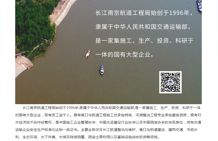 据长江南京航道工程局官网介绍,其隶属于中华人民共和国交通运输部,是一家集施工、生产、投资、科研于一体的国有大型企业,现有员工逾千人。主要业务涉及长江航道整治与维护、港口与航道建设、建筑交通、市政水利、生态环保、水下炸礁、水域及陆域测量、疏浚土再利用以及基础设施综合投资等领域。