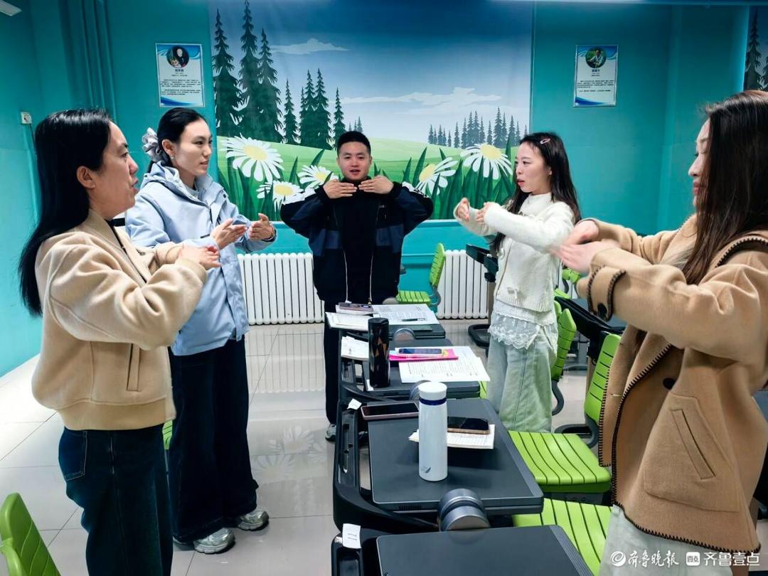本次教研活动由聊城市实验小学音体美学科主任杜丽芹主持。教研过程中,音乐组教师集中练习柯尔文手势,通过规范、精准的手势训练,强化对音高、节奏的直观教学能力,为后续跨学科课堂中音乐元素的融入夯实基础。