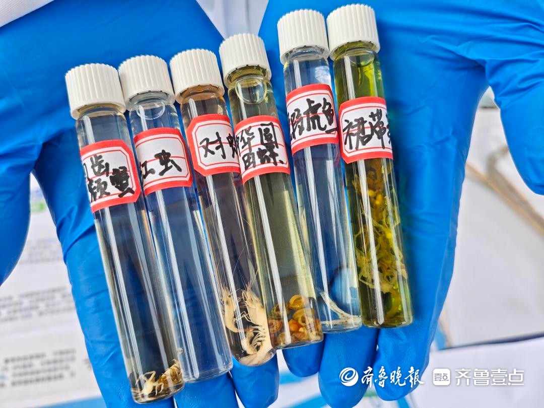 一旁的展示桌上,水生植物标本和装有底栖动物的容器吸引了众人目光。“这些虾、蟹、田螺等,都是我们从辛安河里直接采集的样本。”烟台大学土木工程学院副教授嵇斌讲解说,“我们的现场实验主要涵盖三大方面:辛安河水质快速检测、水生植物与底栖动物的采集识别,以及水体温室气体监测。通过这三方面的调查和综合分析,可以更全面地评估辛安河水生态环境健康状况。”