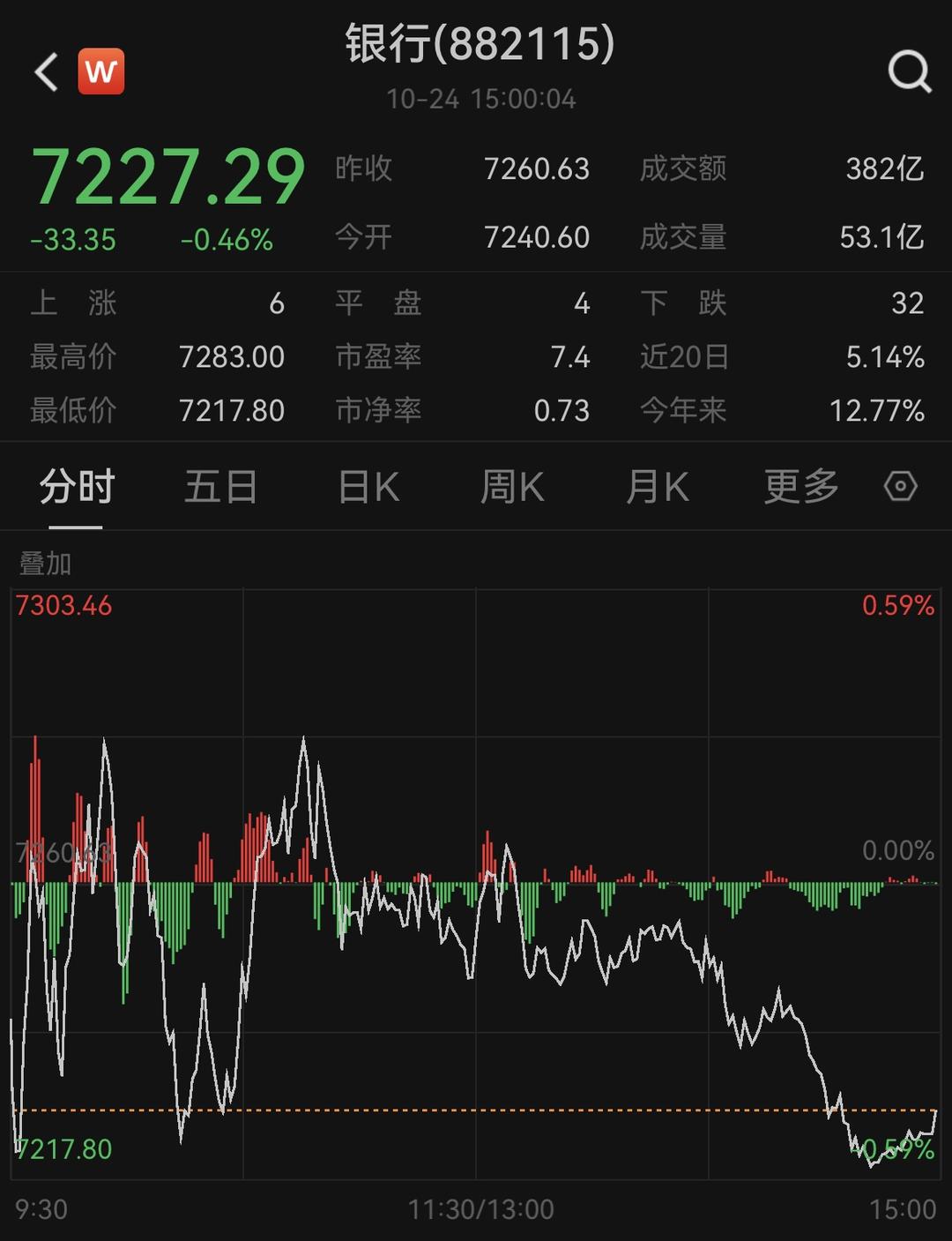 10月24日,连续近半个月表现强势的的A股银行(882115.WI)板块出现回调,早盘低开0.42%,盘中震荡最高触及0.31%,但在临近尾盘再次下跌,最终收跌0.46%,当日资金主力净流出8.22亿元。