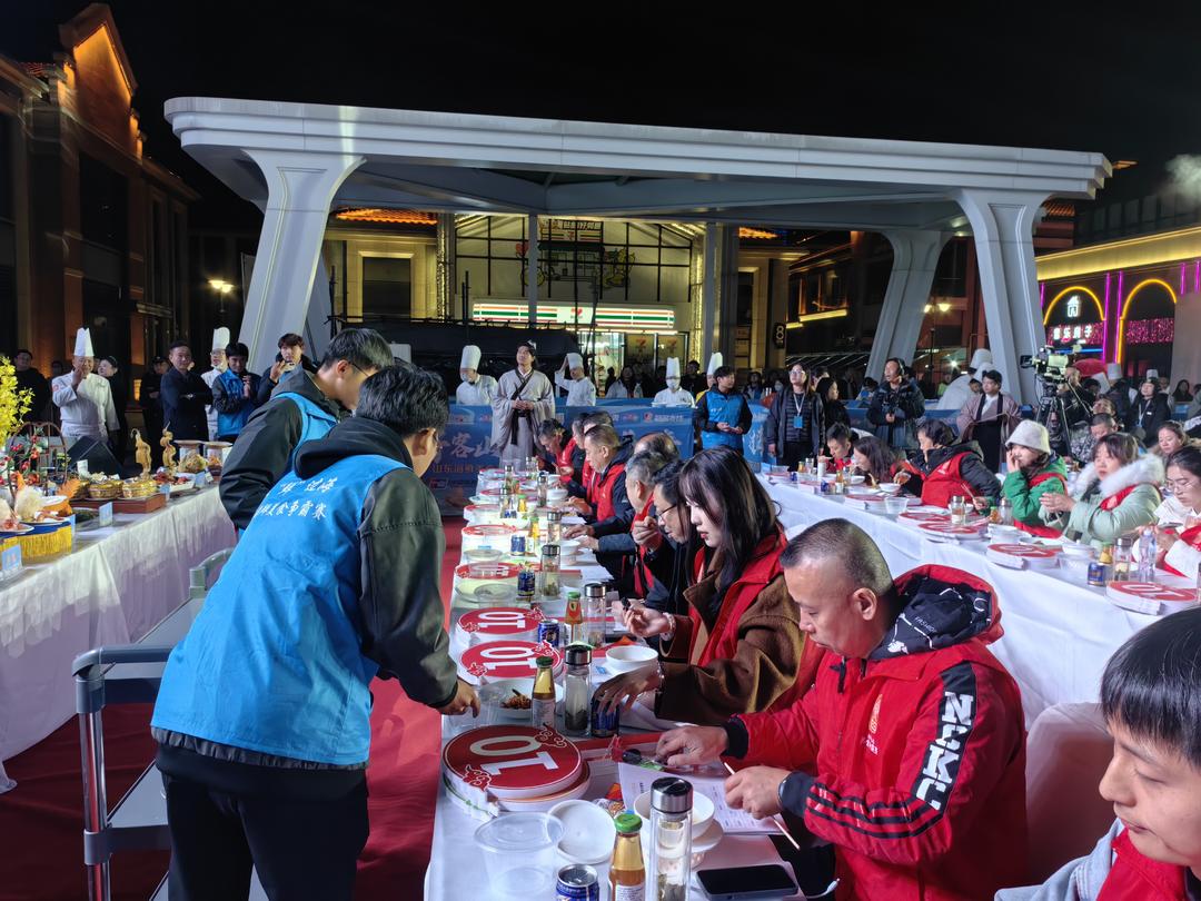 活动在开场歌舞《烟台模样》中缓缓拉开序幕,延续烟台八仙文化脉络,活动特别设置“八仙”助力环节。伴随着经典传说叙事,“八仙”形象惊艳亮相,分别引领参赛队伍登场。现场设置了烟台美食文化名片“八仙宴”特色展区以及“全民免费品鉴八鲜汤”活动专区。据悉,“八仙宴”以海参、扇贝等本地海产为原料,融合养生理念与千年烹饪技艺,获评“中国菜”山东主题名宴。烟台欣和企业食品有限公司打造的“全民免费品鉴八鲜汤”则在现场开锅迎客,一碗热汤凝聚烟台海鲜精华,成为现场最具人气的互动体验。其推出的海肠粉产品更让场外观众得以复刻鲜美滋味,实现“鲜味共享”。