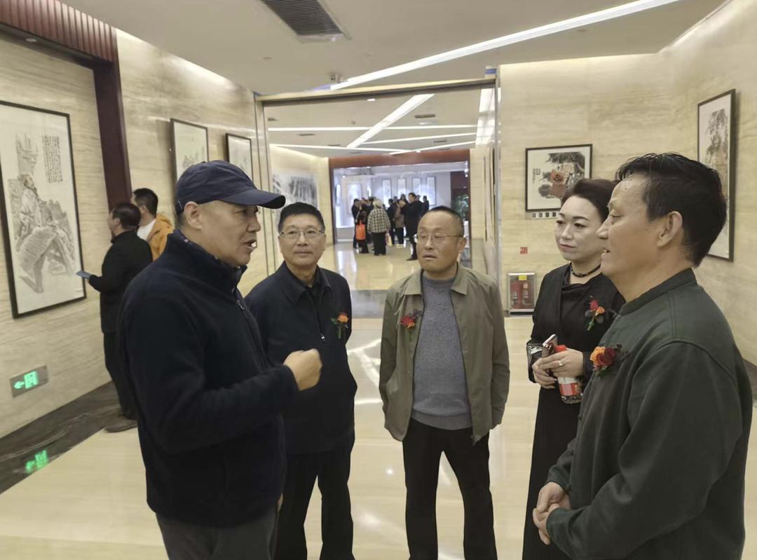 张立奎先生向参观画展的嘉宾介绍作品