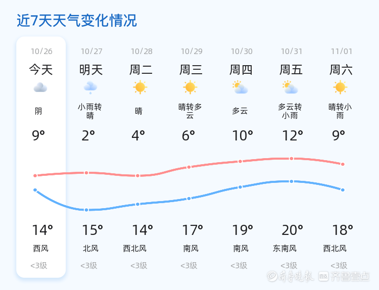明天10月27日,潍坊天气将由小雨转晴,气温有所下降,最低气温降至2℃,最高气温为15℃。相比今日,明天气温降幅较大,市民需及时增添衣物,尤其是早晨和夜间,寒冷感明显增强。