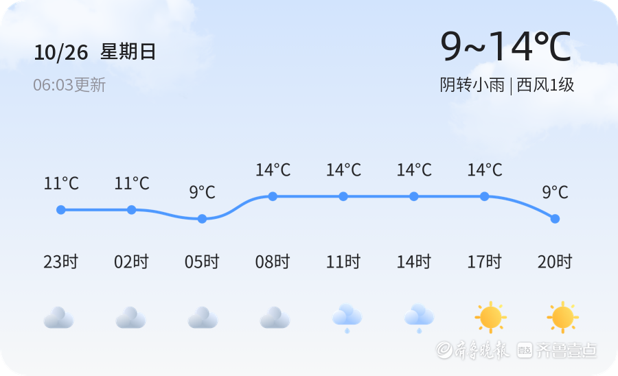 今天是2025年10月26日,农历九月初六,潍坊市迎来阴雨天气。今日气温在9℃到14℃之间,整体湿度较高,PM2.5指数为104,空气质量一般。目前,潍坊各区的天气情况基本一致,均为阴转小雨,风力较小,以西风1级为主。市民出行需注意携带雨具,路面湿滑,驾车请注意安全。