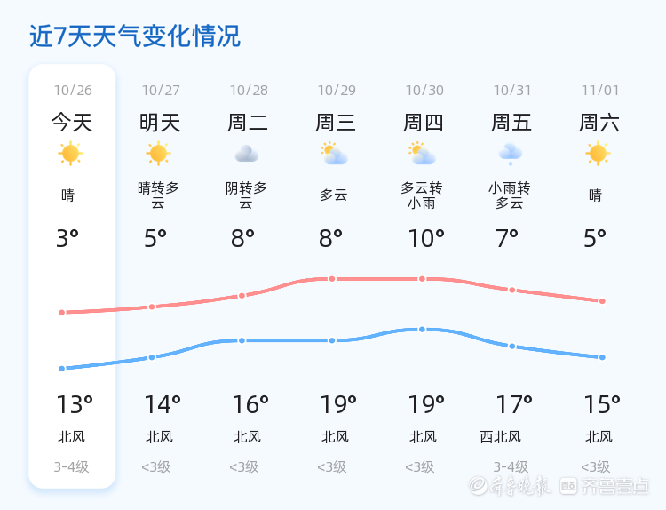 未来三天(10月28日至10月30日),滨州地区天气趋势以多云为主,气温逐步回升,最高气温可达16℃,最低气温维持在3℃左右。其中,10月30日可能会出现小雨天气,提醒市民注意携带雨具,防范降雨对出行造成的影响。