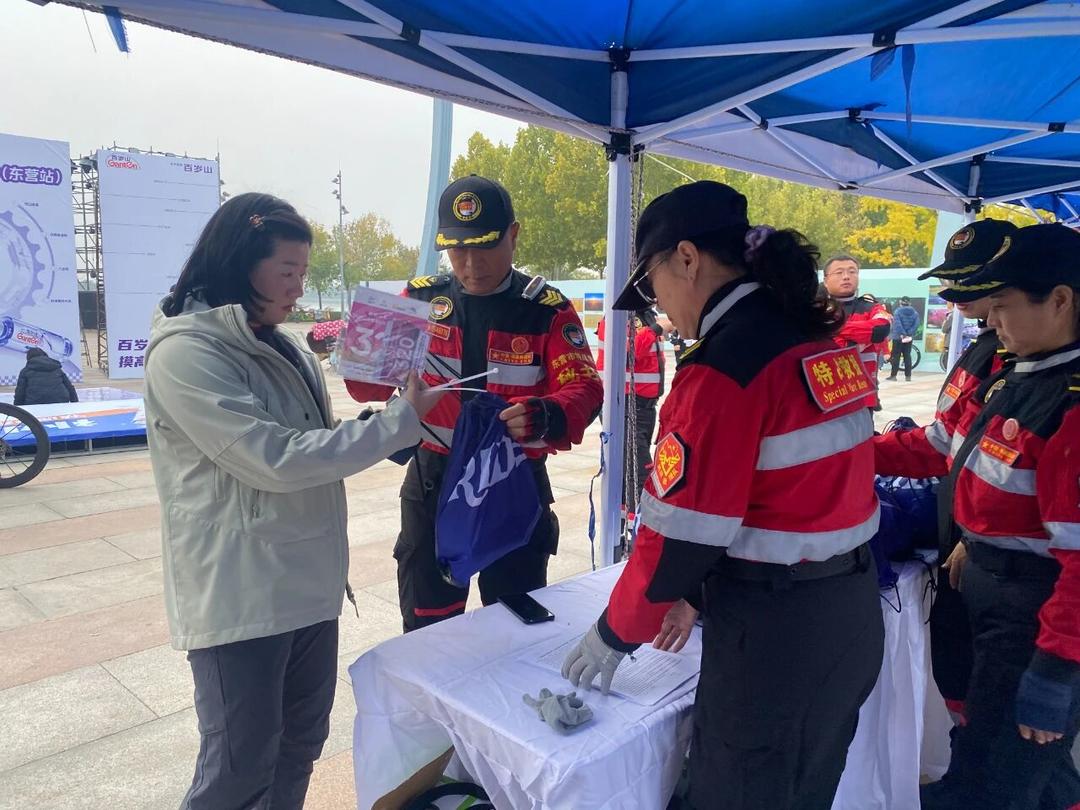 10月26日,风景如画的鸣翠湖畔人声鼎沸,“好运山东·骑迹山海”山东省自行车运动联赛(东营河口站)在东营市河口区圆满举行,来自全省各地的参赛选手在此展开一场速度与耐力的巅峰对决。为保障赛事顺利进行,河口区志愿服务联合会组织河口区青年志愿者协会、河口区义工协会、河口区战盾救援队、河口区蓝枫救援队、河口区老兵志愿服务队等团队全程护航,以全方位服务保障,展现新时代志愿服务的“河口担当”。