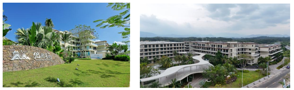 建邦·悠然学苑创新性提出“学苑式全龄康养旅居社区”理念,将健康医疗、高端酒店与多元休闲业态深度融合。项目规划运动健康区、文艺学习区和静谧休闲区三大功能空间,配备室内网球场、天然温泉泡池、专业教室、图书馆及儿童乐园等丰富设施。生活配套方面,三个自助餐厅提供营养均衡的日常餐饮,独具海南风情的“老爸茶”餐厅成为邻里社交的热门场所,园区超市则全方位满足日常购物所需,让旅居生活便捷且温暖。生态农场选种海南当地蔬菜和水果,让旅居者体验亲手种植和采摘收获的乐趣,在“可参与的生活场景”中感受田园风光。项目同时落位了假日美地、品睿两大高品质酒店,提供多元化旅居生活场景。